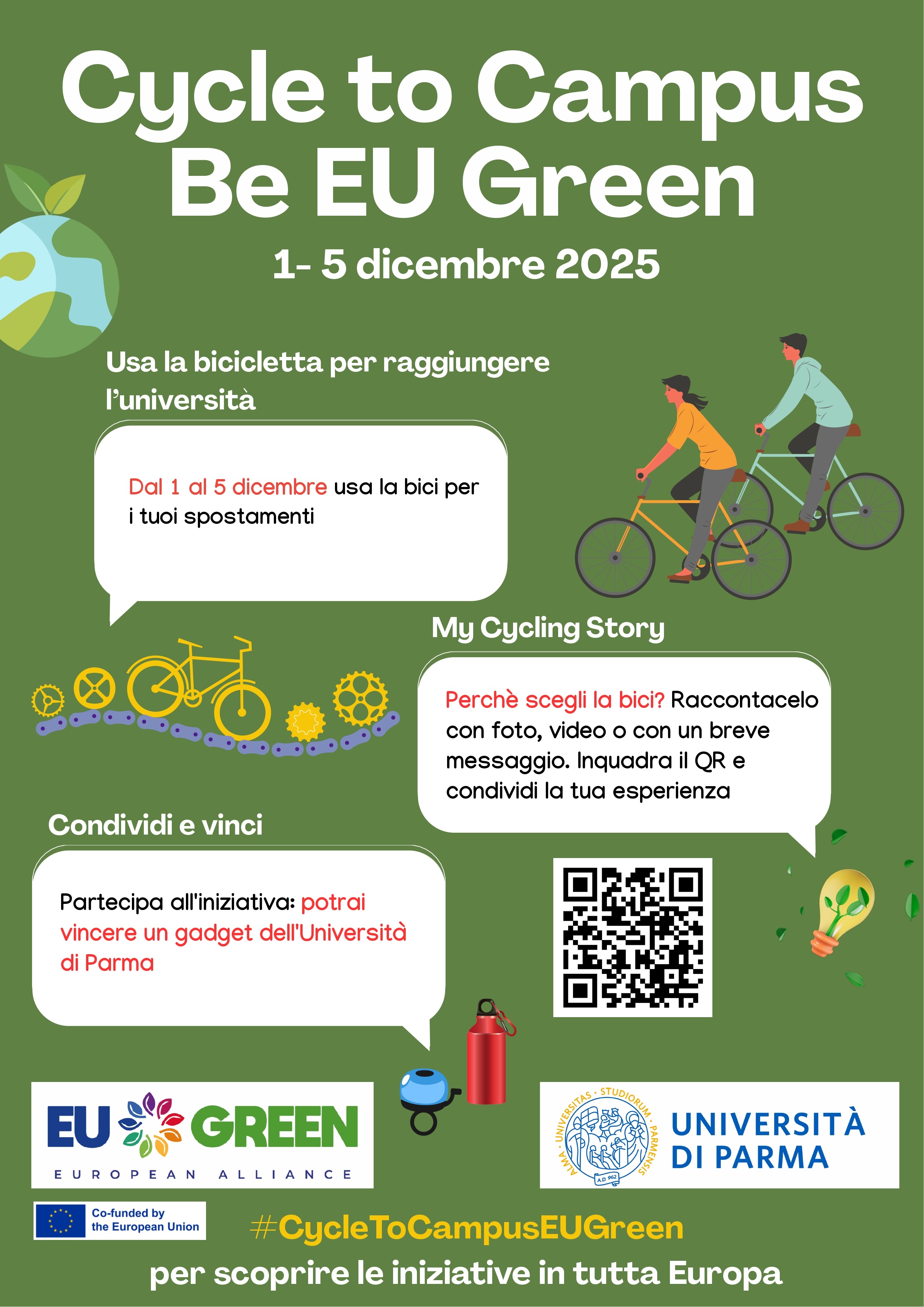 Parma, 26 novembre 2025 – In occasione del World Sustainable Transport Day, l’Università di Parma, aderisce all’iniziativa EU GREEN Cycle to Campus. Be EU Green, che promuove l’uso della bicicletta per raggiungere l’Ateneo invitando alla condivisione di storie, impressioni, foto e video.