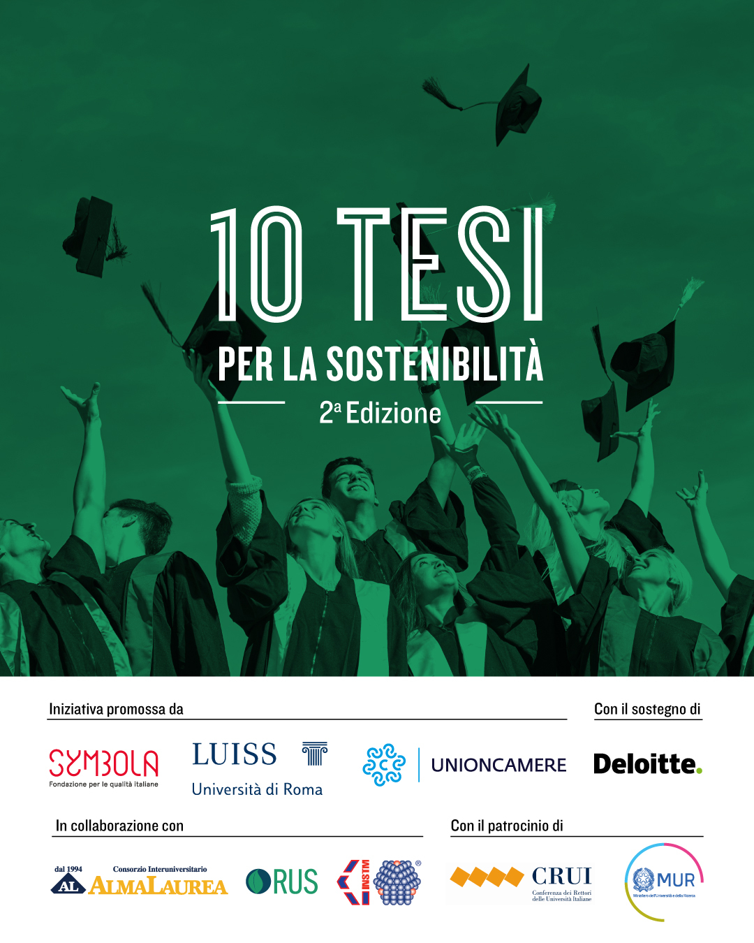 Il Premio è promosso da Fondazione Symbola, Luiss Guido Carli e Unioncamere con il sostegno di Deloitte Climate & Sustainability, in collaborazione con Consorzio Interuniversitario AlmaLaurea, Rete delle Università per lo Sviluppo Sostenibile (RUS) e Consorzio Interuniversitario Nazionale per la Scienza e la Tecnologia dei Materiali (INSTM). L’iniziativa è patrocinata dalla Conferenza dei Rettori (CRUI) e dal Ministero dell’Università e la Ricerca. L’Università di Parma è fra gli Atenei aderenti.