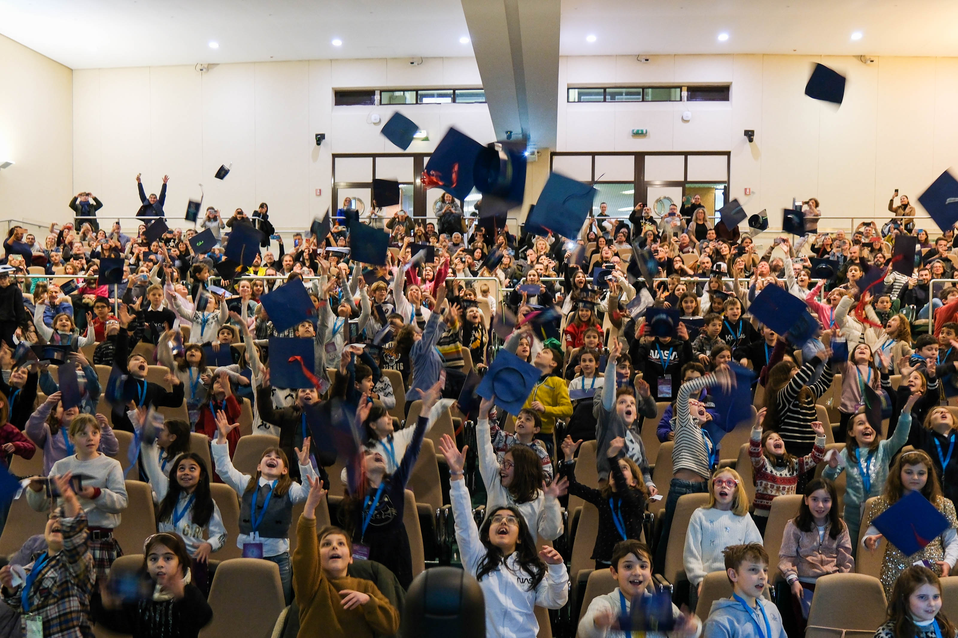 La proclamazione dei “Dottori e delle Dottoresse Unijunior” è stata accompagnata da lunghi applausi e dal tradizionale lancio dei tocchi.